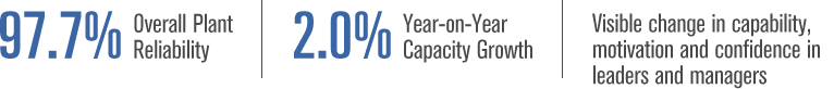 Key tools of FMEA, Value Stream Mapping and Process Capability Analysis identified opportunities and highlighted shift in management behavior required to move performance.